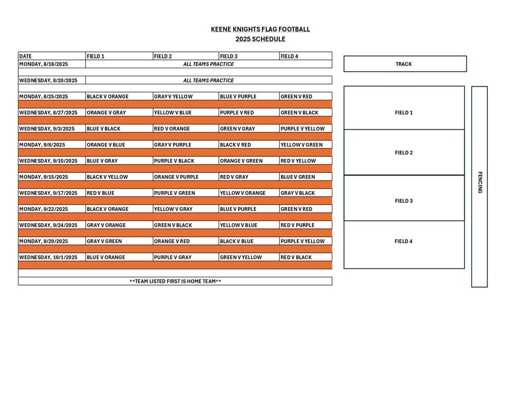 - All players will receive a Keene Knights flag football "jersey" (t-shirt).
